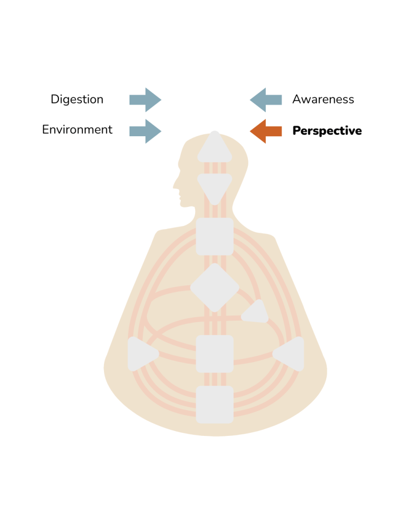 Right-facing perspective arrow —> Broad/peripheral perspective and General Manifestation.